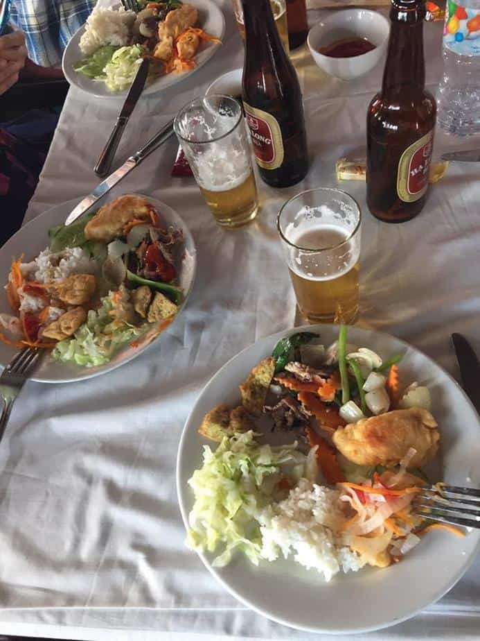 Tekne turlarının Vietnam yemeklerini denemek için de büyük bir fırsat olduğunu düşünüyorum. Çok çeşitli ve seçenekli sunulan yemeklerin lezzetinden pek memnun kaldık; korktuğumuz başımıza gelmedi. Pilav, sebze gibi tadı yalın yiyecekleri de Şili biberinden yapılan acı biber sosu ile tatlandırarak kendi çözümümü buldum, sos canavarı olarak sofradaki sosları sildim süpürdüm. Ancak tesadüfen karşılaştığımız ve başka bir tekne ile seyahat eden Gaziantepli hemşerimiz bizimle aynı fikirde değildi… Vietnam yemekleri ile ilgili ayrıntılı bilgiyi genel Vietnam Rehberi yazımızda paylaşacağız
